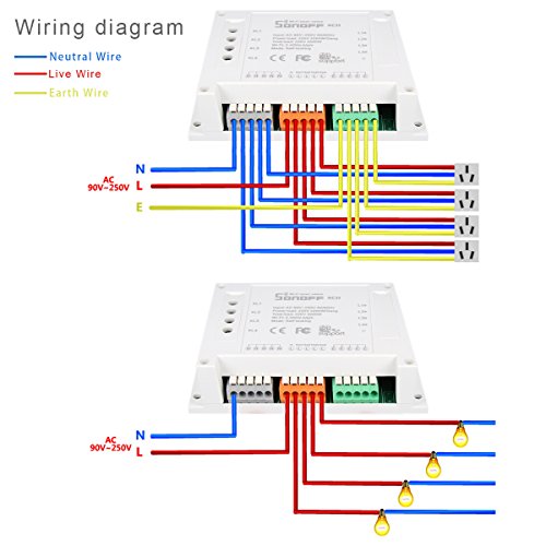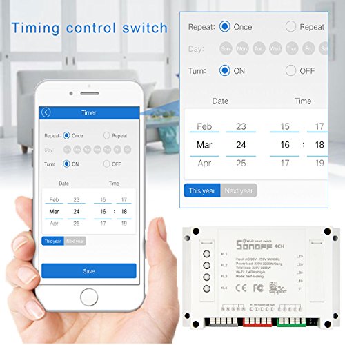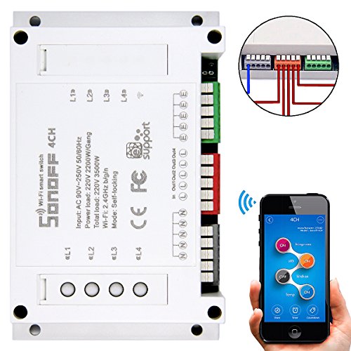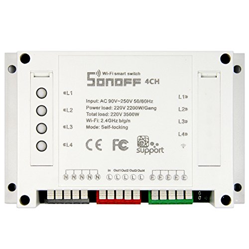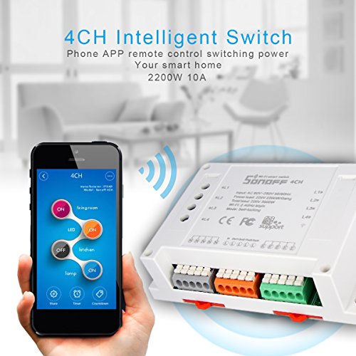 Sonoff 4CH 電源リモートスイッチ スマートで電源を制御 wifi コンセント 携帯appで外出でも自宅の電器製品をON/OFF 遠隔操作できる Android/iOSに対応