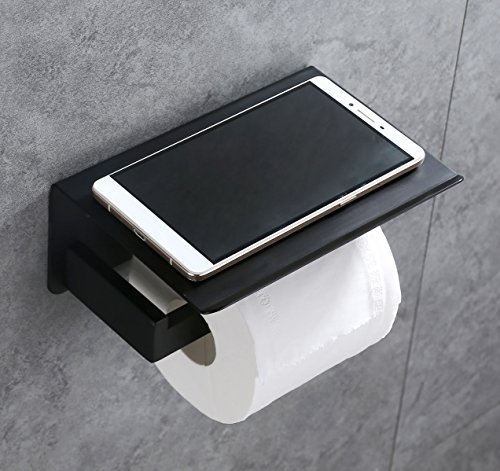 トイレペーパーホルダー SUS304ステンレススチールバスルームペーパーティッシュホルダー モバイルフォン用棚付き ブラック B01N7K3D5K