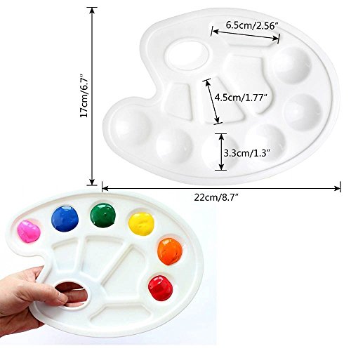 ホワイトプラスチックパレット4点、それぞれ6つの丸皿と4つの不規則皿が付、大容量仕様、漏れずに多くのカラコーディネーションを作り出せます
