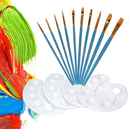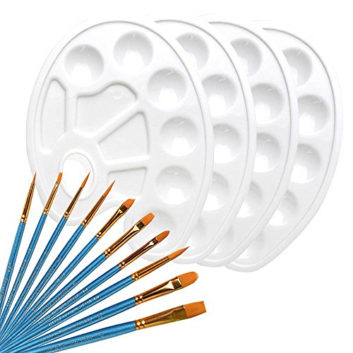 APLANET 4点入り水彩パレットと10本ペイントブラシセット 水彩筆 油絵用筆 絵の具 絵皿 塗装セット