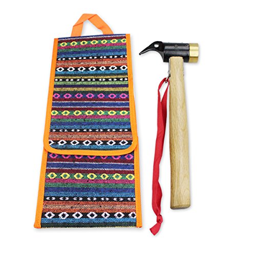 AQOGQOGA ペグハンマー 銅製 ヘッド 木製 鍛造 ハンドル 収納袋付き キャンプ アウトドア ハンマー