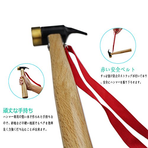- ハンマーヘッドは先端部が銅製で丈夫です。木製ハンドルと黄銅製ヘットに組み立てるペグハンマーが耐久性と衝撃性が信頼できます。
