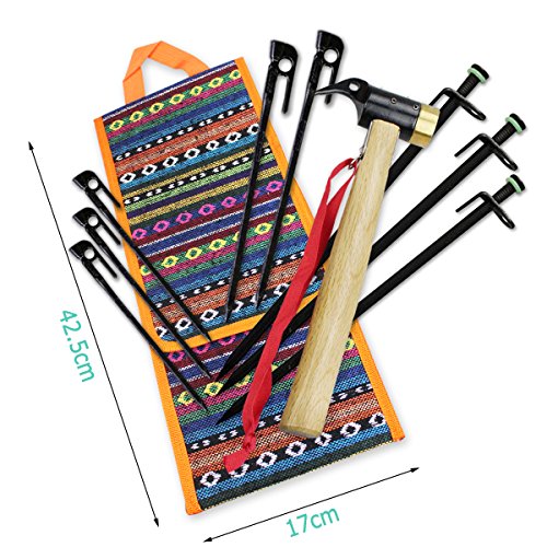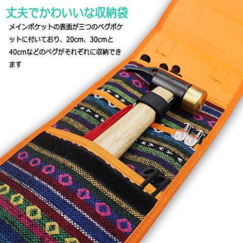 - 【収納袋付き】2タイプの収納袋付きです。厚めの生地でハンマーとペグをしっかり保護しながら持ち運べます。エスニック調の色合いは、野外においても目立つので紛失防止にもなります。