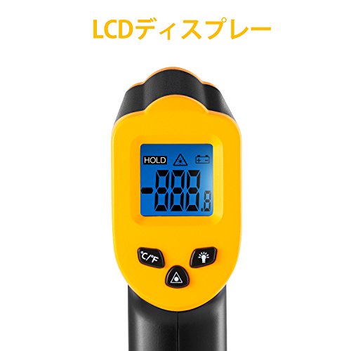 赤外線放射温度計、AQV非接触レーザー温度計 デシタル温度計【-50 ~+550℃(-58°F~1022°F)】液晶表示摂氏と華氏 乾電池付き 2年間の保証 イェロー …