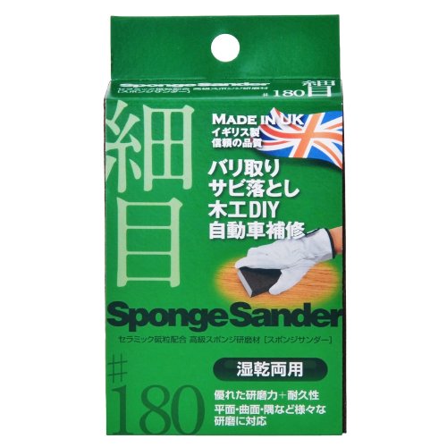 ●研磨力と耐久性に優れる。●平面・曲面・隅など様々な研磨に対応●適度にコシのあるスポンジに直接研磨剤をコーティングしているので、平曲面・スミ部分の研磨に優れた性能を発揮します。●研磨材にはセラミック砥粒を使用し、従来の研磨材に比べて耐久性・研削力ともに飛躍的に向上。●パッケージサイズ/縦:118mm横:68mm高さ:25mm●パッケージ重量:26g●生産国:イギリス●材質:スポンジ:ウレタン研磨剤:セラミック・酸化アルミナ●湿乾両用●用途:木工作業・自動車補修、サビ取り全般に優れる●用途:アルミのバリ取り・面取り、塗装前作業に適している●用途:パテ形成に使える●粒度:♯180