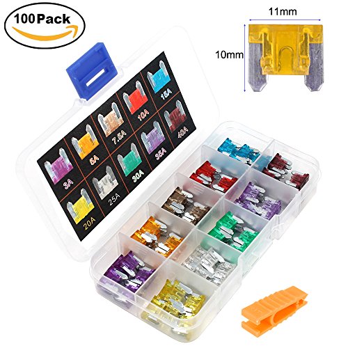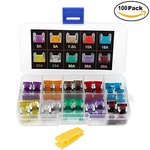 ARTGEAR 100個 低背ヒューズ 車ブレードヒューズ3A 5A 7.5A 10A 15A 20A 25A 30A 35A 40Aヒューズ脱着工具付き-自動車用