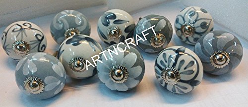 artncraft 20ノブグレー&ホワイトクリームハンドペイントセラミックノブキャビネット引き出しプルハンドル