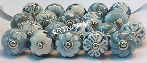 artncraft 10ノブグレー&ホワイトクリームハンドペイントセラミックノブキャビネット引き出しプルPulls