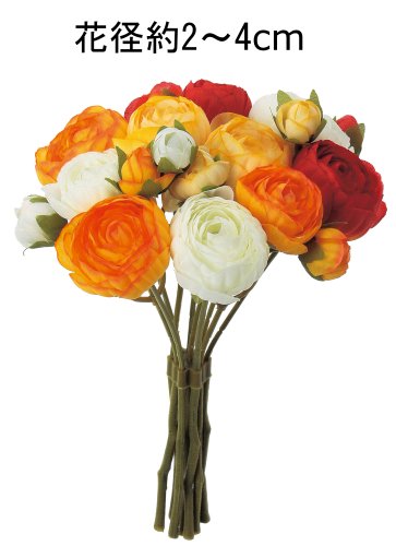 asca 造花 ラナンキュラスバンチ オレンジ 全長約22cm