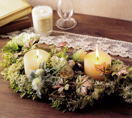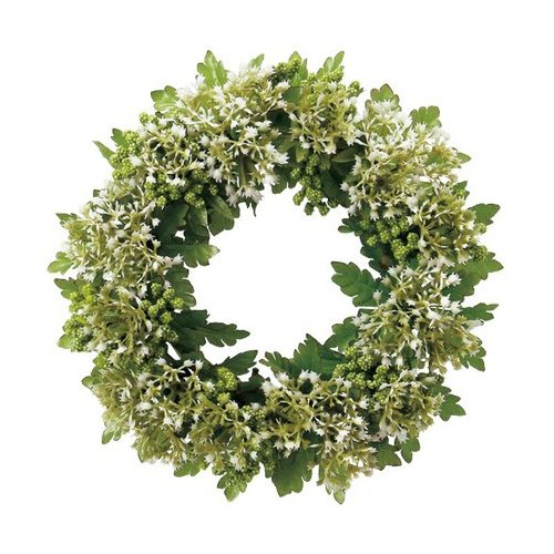 asca 造花 ミックスフラワーリース クリームグリーン 直径:17cm A-32481-053A