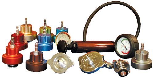 The ATD pressure test kit quickly reveals external cooling system leaks, as well as detect internal engine leaks caused by blown head gaskets and cracked block or heads. Kit includes high quality hand pump and 12 adapters to fit the most popular domestic and import cars and light trucks.