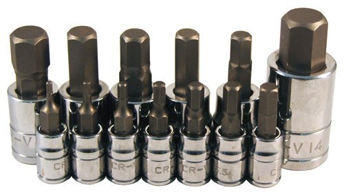 Includes: (13) Metric Hex Bit Sockets: 2mm 1/4" Drive (ATD-205). 2.5mm 1/4" Drive (ATD-206). 3mm 1/4" Drive (ATD-207). 4mm 1/4" Drive (ATD-208). 5mm 1/4" Drive (ATD-209). 5.5mm 1/4" Drive (ATD-210). 6mm 1/4" Drive (ATD-211). 7mm 3/8" Drive (ATD-193). 8mm 3/8" Drive (ATD-124556). 9mm 3/8" Drive (ATD-212). 10mm 3/8" Drive (ATD-124557). 12mm 3/8" Drive (ATD-213). 14mm 1/2" Drive (ATD-214). Bits are made from S2 steel to meet or exceed torque specifications. Sockets are made from heat treated chrome vanadium steel for strength and durability.