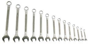 This professional quality 14-piece combination wrench set is made of chrome vanadium steel.