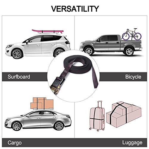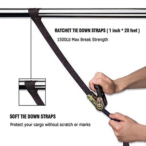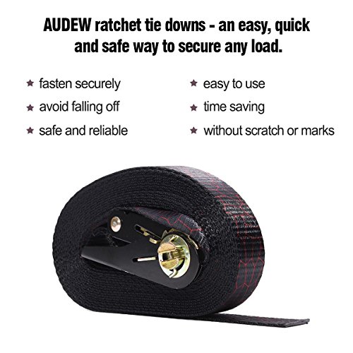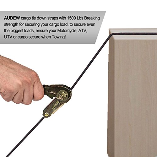 - 結束され安全性と実用的:Audewラチェット4パックのストラップと固定して荷物をロード, 1500ポンド、破壊強度500ポンド負荷容量の大きさ:1インチで幅、長さ20フィートで最大のロードされると、お客様のときも、バイク、ATV、UTVカーゴを安全トーイングにも安全。
