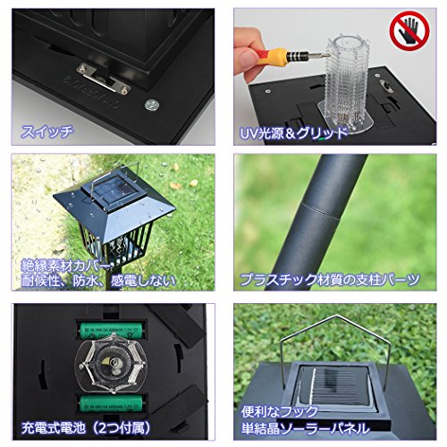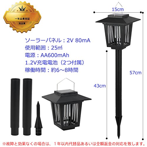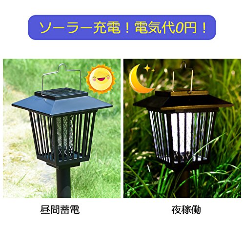 AUGYMER 電撃殺虫器 ソーラー 捕虫器 虫取り機 蚊取り器 殺虫ライトガーデンライト UV光源吸引式殺虫器 LEDソーラー蚊取りライト 1W 省エネ 電気ショック 虫取り 虫除け 誘虫灯 家庭用殺虫灯 ソーラー充電式 防水 静音 置く 地面に挿す 吊り下げ (蚊よけ led自動点灯 2way) 化学薬品不使用 赤ちゃんやペットにも安心 屋外/庭/園芸/玄関などインドア/アウトドアに適用 1年保証付き