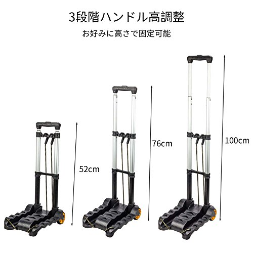 - 【ハンドル3段階調整】ハンドルのボタン操作で、高さが3段階調整ができます! ハンドキャリーの高さは、ハンドルのボタンを押すだけで簡単に調整できます。子供から大人まで背の高さに関係なく楽々使えることができます。子供から大人まで老若男女に幅広く使用可能、使う人の身長やシチュエーションに合わせて変えられるので、とても便利なキャリーカートです。旅行やアウトドア先での移動や重い荷物を運ぶ際に大活躍。また引っ越しやお部屋の模様替えなどにも使えて超便利です。女性でも簡単に持てる!
