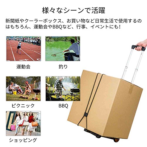 - 【日常生活に多用途なキャリーカート】日常生活水購入時、(駐車上から家までの運搬など)、釣り、引っ越し、旅行、運動会、バーべーキュー、キャンプなどのアウトドアシーンでも大活躍間違いなし.自宅、オフィス、旅行、出張、アウトドア、楽器や機材の運搬など、様々なシーンでの物の運搬をサポートします。付属のゴムバンドを使うことで、荷物をしっかりと固定することができます。 ショッピング、商品の取り扱い、廃棄物処理などを使用することができ、実用性が高く、多くのトラブルを排除します。伸縮性のあるベルトで固定物品にも十分対応可能で、輸送過程でアイテムを見逃すことはありません。