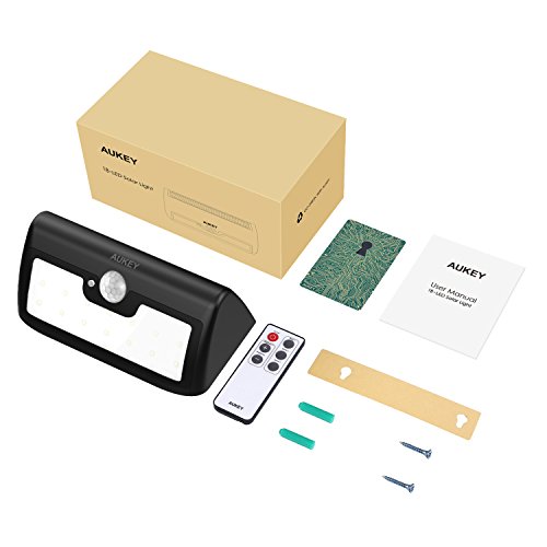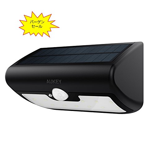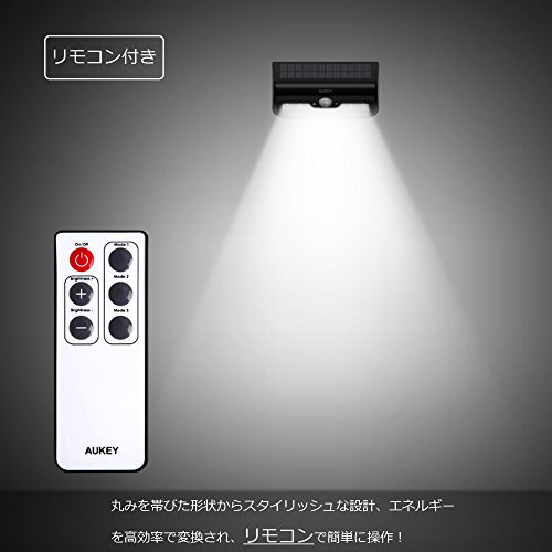 AUKEY 18LED センサーライト ソーラーライト 人感センサー・光センサー リモコン付き 1.5W 太陽光発電 夜間自動点灯 防水IP65 屋外照明/防犯/軒先/庭/ガーデン/ドライブウェイ/玄関周りなど 壁掛け LT-SL2