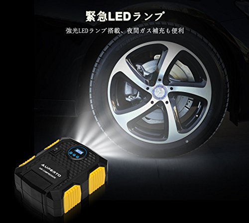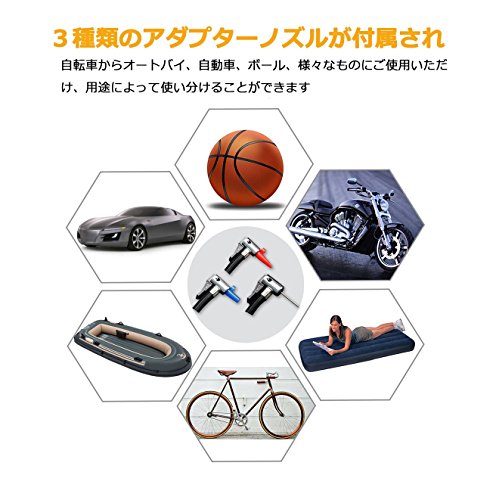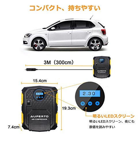 車用空気入れ AUPERTO エアコンプレッサーコンパクト シガーソケット接続式 3種類アダプターノズル付き LEDライト付き 自動車 バイク ボール 浮き輪 レジャー用品