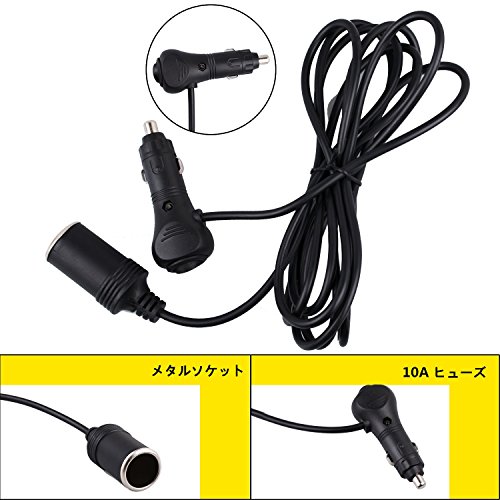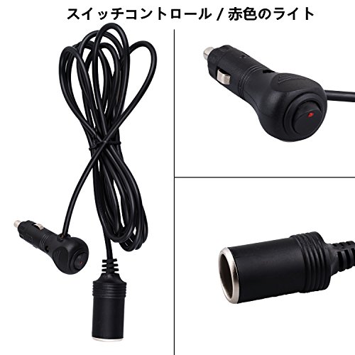 シガーアダプター用延長コード AUPERTO DC電源12V24V兼用 電源ソケット(3m 60W 5A 急速充電 ) (ブラック)