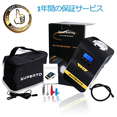 AUPERTO 12V車用空気入れ 80秒操作完成 エアーコンプレッサーLEDライト付 携帯便利 付自動車 バイク 自転車 ボール 浮き輪 風船用 PSE認証 (シリンダー22)