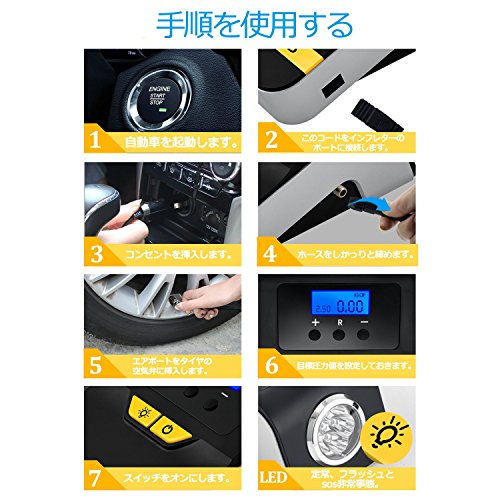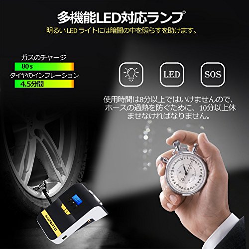 - ⚛【急速インフレ】 工率が120ワットと直径が22mmのシリンダーは、エアレーションをする時間を大幅に短縮し、ミッドサイズの自動車用タイヤをフラットから30〜36 psiに膨張させるのにわずか4.5分。 さらに、必要な少量の空気で80秒以内にタイヤを素早く満たすことができます。