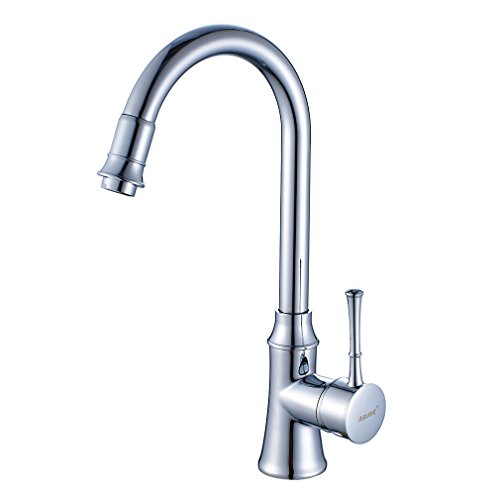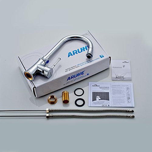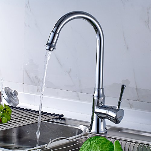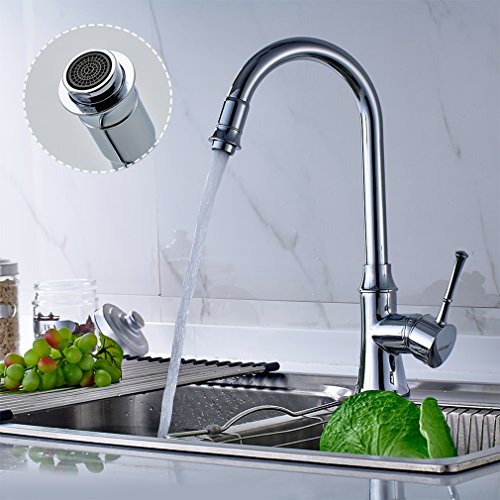 Auralum 360度回転ホット&コールドミキサーシングルハンドル単穴キッチン排水溝シンク蛇口タップ、クロム。。。 シルバー NVH6603