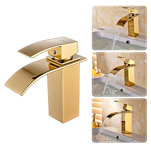 Auralum浴室ホット/コールドミキサーBasin容器シンクの滝シングルハンドル1つ穴真鍮クロームデッキマウント蛇口タップ