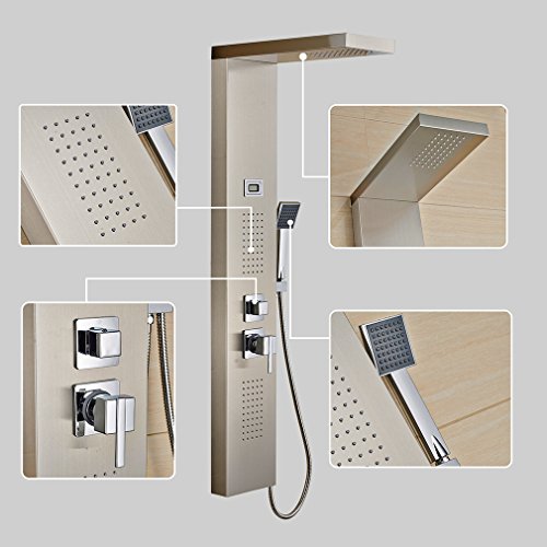 Auralumシャワーパネルは最高のシャワーパネル付きが市場に存在します。シャワーの本体のパネルは高品質の304ステンレス鋼設計で、複数の関数、携帯用ヘッドを、オーバーヘッドのシャワーなどの、3ボディマッサージノズルをクリーニングしてください。2つのコントローラは追加機能を制御すると水の温度。このユニークなとlavishingのシャワーパネルを購入するには、日常ののハード作業後には、大きいレベルのシャワー体験を味わうことができる。
