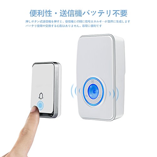 AURTEC 【送信機受信機ともバッテリー不要】ワイヤレスチャイム ワイヤレスベル 送信機1台受信機2台 ドアベル 玄関チャイム 呼び出しチャイムセット インターホン ドアフォン 防犯ドアベル 防水防塵 チャイム 配線不要 バッテリ不要 充電式 4段階音量調節可能 呼出音楽51曲選択可【送信機1台受信機2台】(ホワイト)