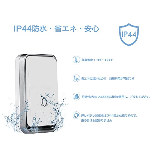 - 【使用簡単&省エネ&防水設計】押しボタン式送信機を押すと、呼び出し音と同時にLEDが点滅してお知らせ!また省エネの設計なので、持続利用が可能です。また、押しボタン送信機は防水仕様(防水規格IP44相当)ですが、防水・防塵性能が優れており、屋外や風呂場でも使用でき、雨の日でも心配ありません。ご注意:水に浸けて使用することはお避けください。