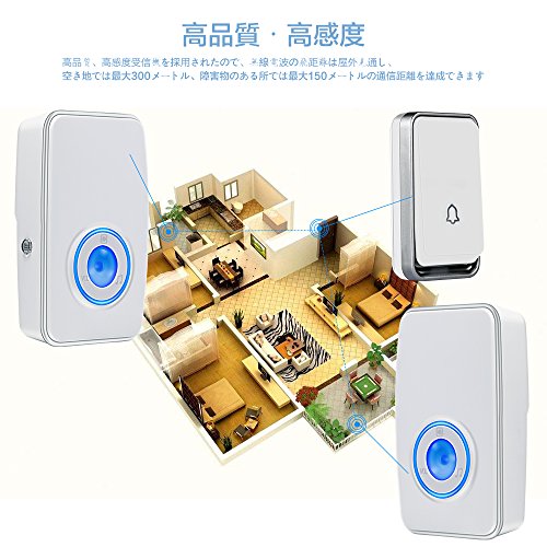 - 【基本機能】定小電力のまま受信機感度をUpし、高品質、高感度受信機を採用されたので、無線電波の飛距離は屋外見通し、空き地では最大150メートル、障害物のある所(例えば建物や壁など)では最大100メートルの通信距離を達成できます。 受信機はワイヤレス式ですので配線不要になります。取り付けも簡単に設置できます。こちらのテストした結果、洋風式の建物は二階のところにもはっきりお知らせできます。