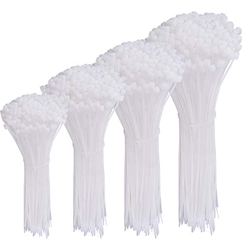 austor 600ピースCable Tiesホワイトケーブルタイナイロン耐久性の高い工業グレードのワイヤータイケーブル結束機ホーム、オフィス、ガレージ、ワークショップのため4 6 8 10インチ(各サイズ)× 150個