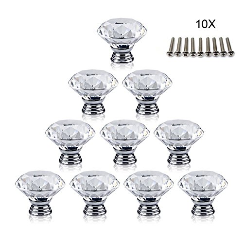 ausukyクリスタルノブのキャビネット10個30 mmガラス引き出しプルハンドルノブ