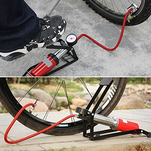 ポータブルペダルパワーバレルフットバイクエアーポンプ高圧車のタイヤインフレータブルゲージ