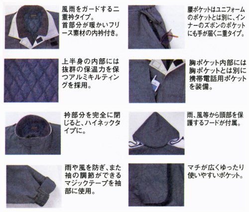 - 強力撥水加工の防寒つなぎ。