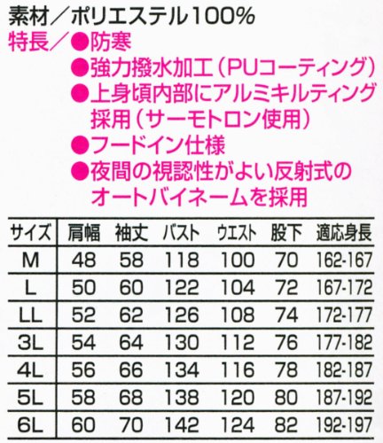 リーズナブルな価格ながらコストパフォーマンスに優れた防寒つなぎです。