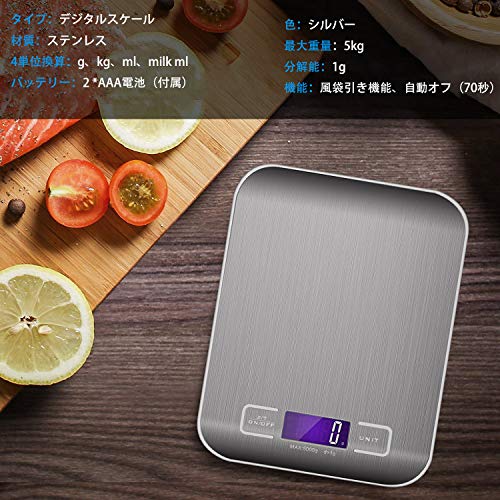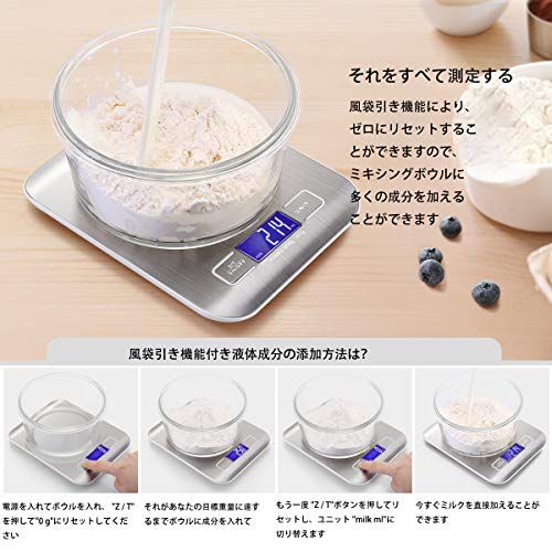 - 四つの高精度のセンサーを搭載して、すっと精確な重量をあげて、そして自動的に校正できます。計量範囲は1g~5000gで、焼き、料理、郵送とアクセサリーのなどにぴったり合います。