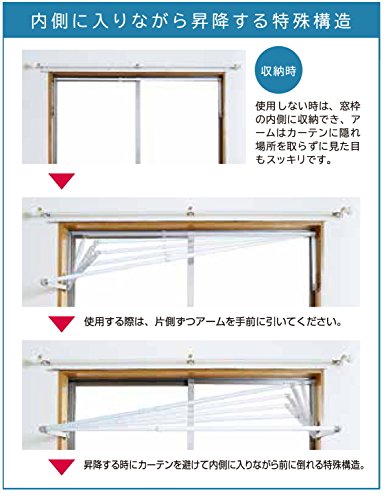 - ●使用しない時には竿ごと窓内々に収納できます。 ●洗濯物を干していても簡単にレースカーテンが閉めれます。 ●窓枠内側に入りながら昇降する特殊機能 ●木製窓枠の場合は付属の付属のタッピンねじで取付可能。 ●耐荷重12kgの安心設計。