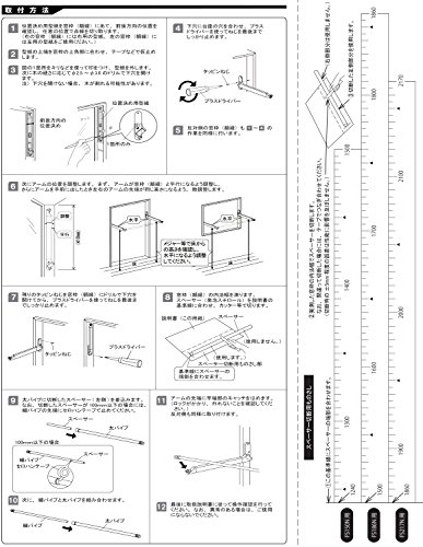 - 竿:ポリプロピレン被膜鋼管 寸法仕様1240mm~2170mmまでの窓枠内寸法に対応。 窓枠の平らな面積30mm以上。