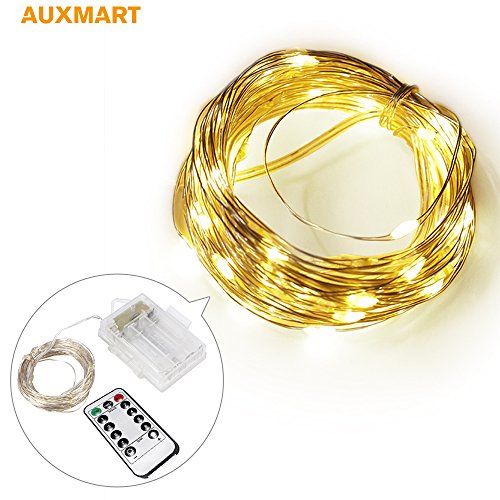 Auxmart 5 V LEDストリングライト100 LED銅線ライトのリモート・コントロールガーデンパティオのベッドルームウェディングアウトドア/インドアデコレーション(ゴールデンカラー、バッテリ駆動式)