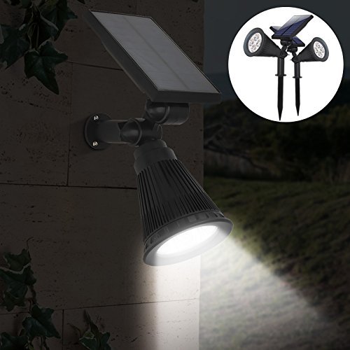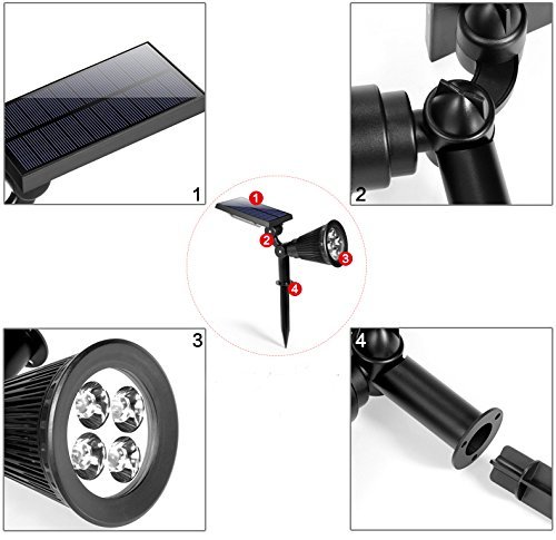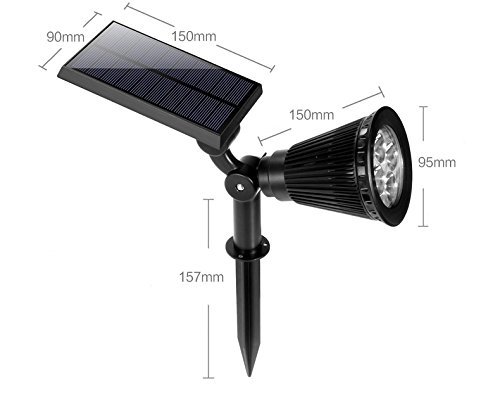 - Package includes: 1pcs Super Warm White 4LED solar outdoor spotlights, Waterproof (IP65), Heatproof and Super Bright - 200 Lumen output, 4 x 50 Lumen enhanced LED