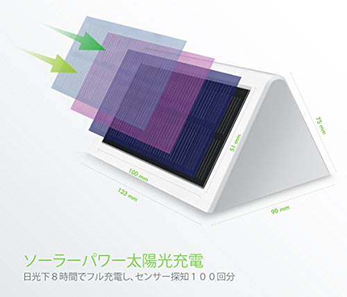 世界最高の製品設計基準に従い、業界最先端の太陽光電池とLEDの組み合わせ技術により、この高品質でエネルギー効率が高く、頑丈で信頼性がありながらお手頃価格のソーラー充電動作感知式LEDライトを、あなたにお届けします。もうこれで暗闇の中を手探りすることも、また邪魔な配線の必要もありません。あなたの玄関周りや壁、階段の手すりなどに最適です。