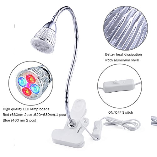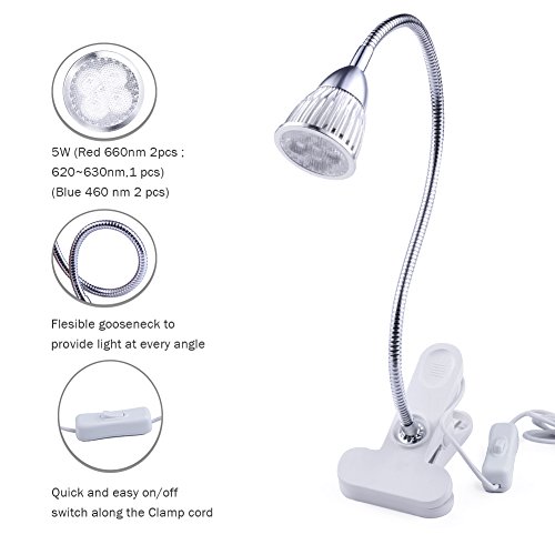 AVAWAYLED植物成長ライトクリップ式5WLEDライト 省エネLED電球水耕栽培 室内でも植物もズクズク成長できる 観賞用 (白)