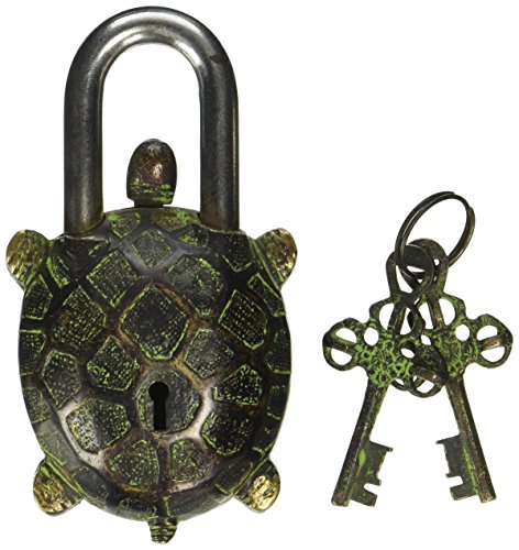 AVS STORE Turtle Monasteryロック – Solid Brass with aの自然Patina美しく装飾南京錠。Ornamentalアンティーク手作りロックをセキュリティとスタイル