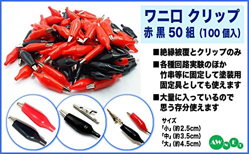 AW-Net ワニ口 クリップ 赤 黒 50 組 100 個 ワニグチ わにぐち わに口 ワニ口 ミノムシ 絶縁 導通 テスト 回路 試験 塗装 乾燥 工作 DIY 【C】大 約3.5cm