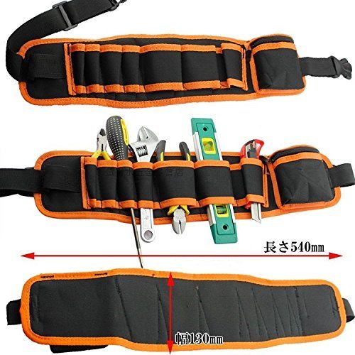 マルチ ツール ベルト 工具 腰袋 電工 ガーデニング 作業 用 ウエスト バッグ サイズ 長さ 540mm×幅 130mm カラー ブラック+オレンジ 【商品説明】 ・各種作業時にあると便利な工具携帯用ベルトです ・通し穴は7か所あり、ネジ入れに便利なファスナーつき小物入れも付属しています ・ベルトの長さは調整可能です ・視認性のよい鮮やかなオレンジカラーでスタイルよく着用できます 【ご購入の前にお読みください】 ・海外製直輸入品です ・個体ごとに色味、擦過痕、風合いが若干異なることがあります ・大きな破損、汚損などは全額返品・返金の対象となります ・工具は付属しません