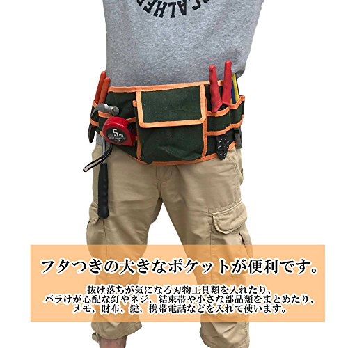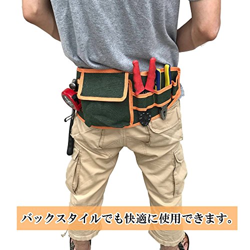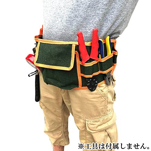 - マルチ ツール ベルト 工具 腰袋 電工 ガーデニング 作業 用 ウエスト バッグ 帆布工具ベルト 本体サイズ 長さ 535mm×幅 195mm (ベルト部含まず) カラー 帆布グリーン+オレンジ ウエスト調節範囲 最小 820mm 最大1070mm ポケットサイズ マチ 40mm 長さ 150mmx幅 150mm 工具差し幅 45mm x2 65mm x 4
