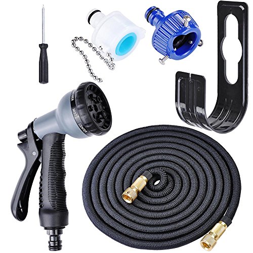 AW 伸縮ホース 5m-15m マジックホース 洗車 ガーデニング 水撒きに 銅製コネクタ ブラック