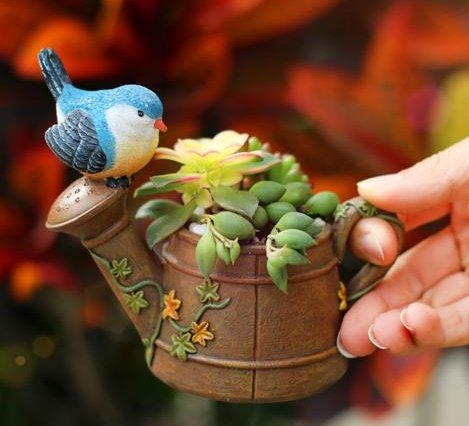 - ●かわいい!小鳥がじょうろにとまっているデザインの植木鉢♪